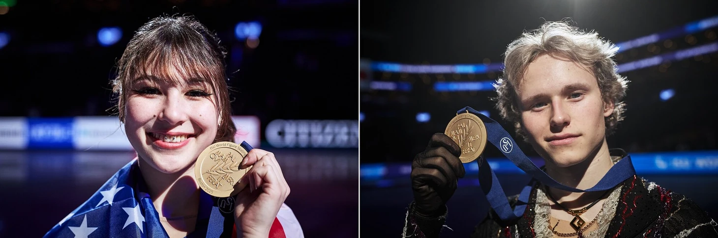Фото дня: Малинин и Лью на пьедестале, через семь лет они это повторили.